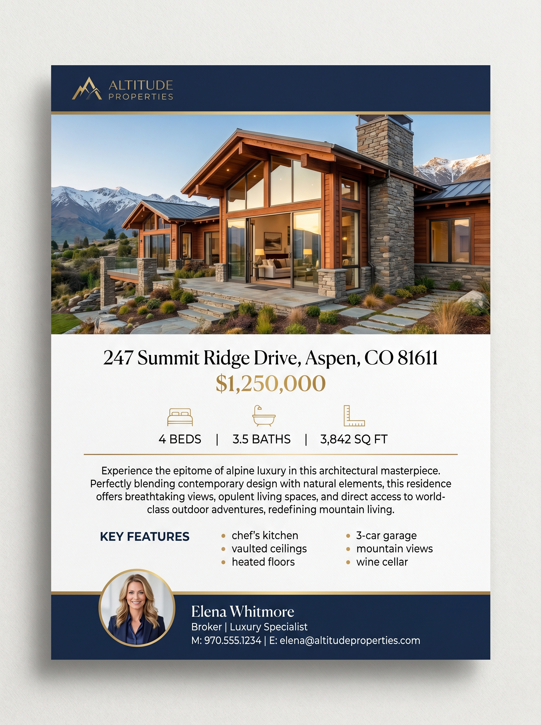 Single-page property highlight for open houses and handouts